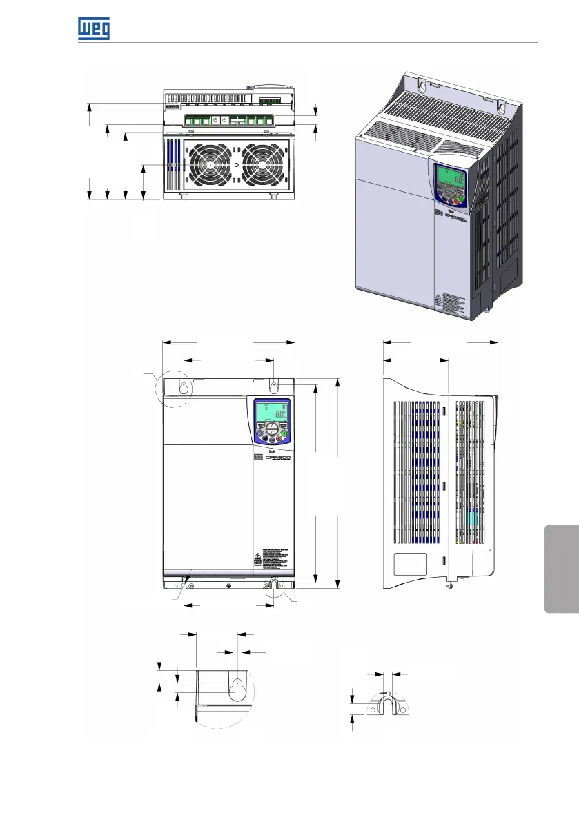 Figure B.9: Inverter dimensions in mm [in] - frame size E