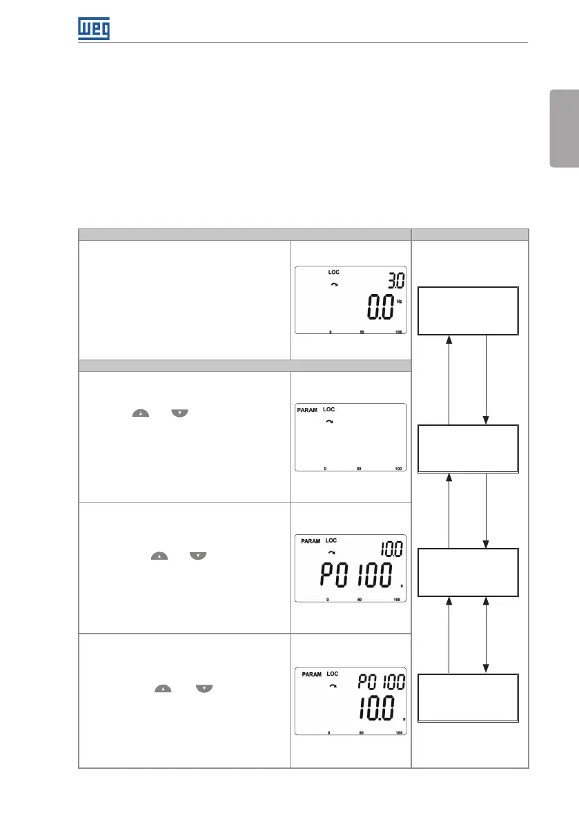group selected by level 1. Level 3, in turn, allows the modification of the parameter selected in