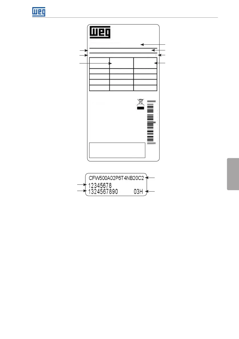 b) Etiqueta lateral del CFW500 para lo tamaño F