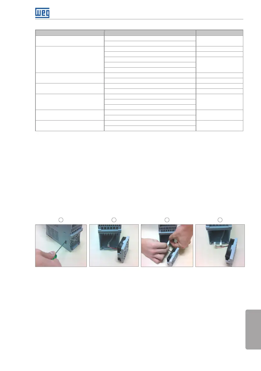 (*) O ventilador do CFW501 pode ser facilmente trocado conforme mostrado na figura 6.1.