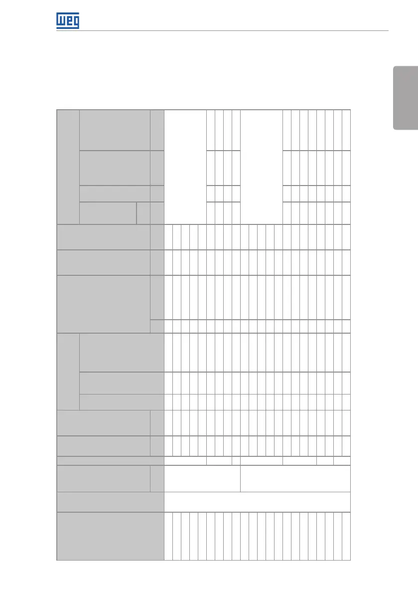 Table B.1: List of models of CFW501 series, main electrical specifications