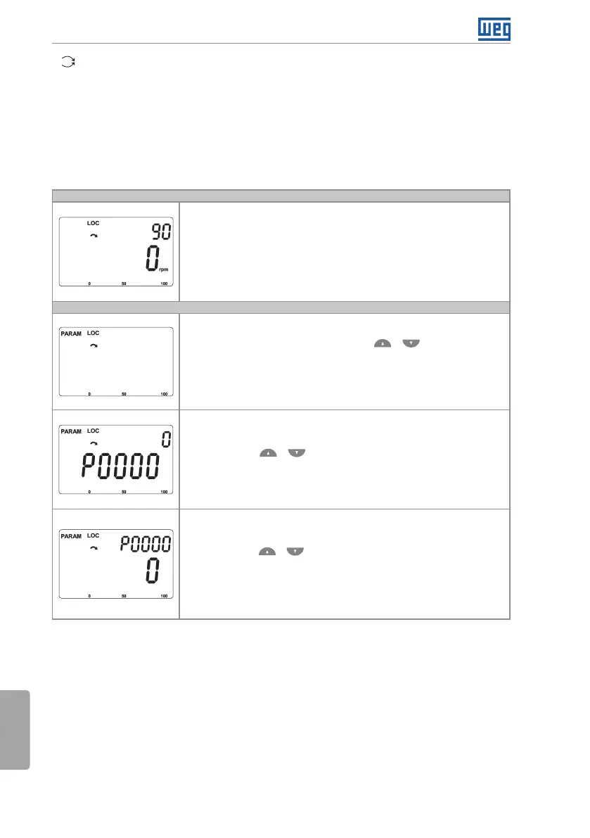 O número do parâmetro é exibido no display principal e o seu conteúdo