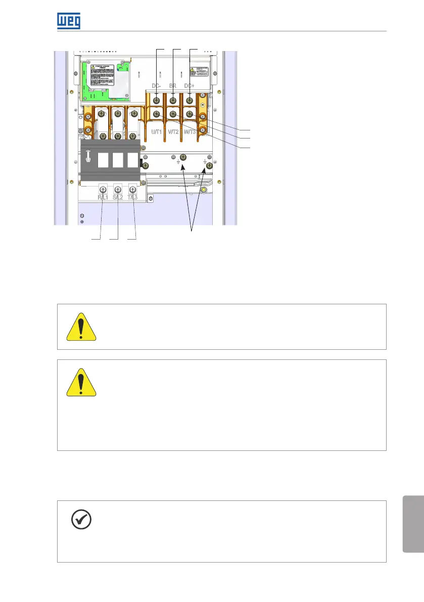 Utilizar terminais adequados para os cabos das conexões de potência e