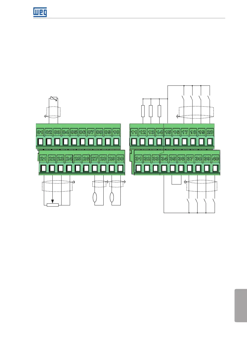 As conexões de controle (entradas/saídas analógicas e entradas/saídas digitais) devem ser