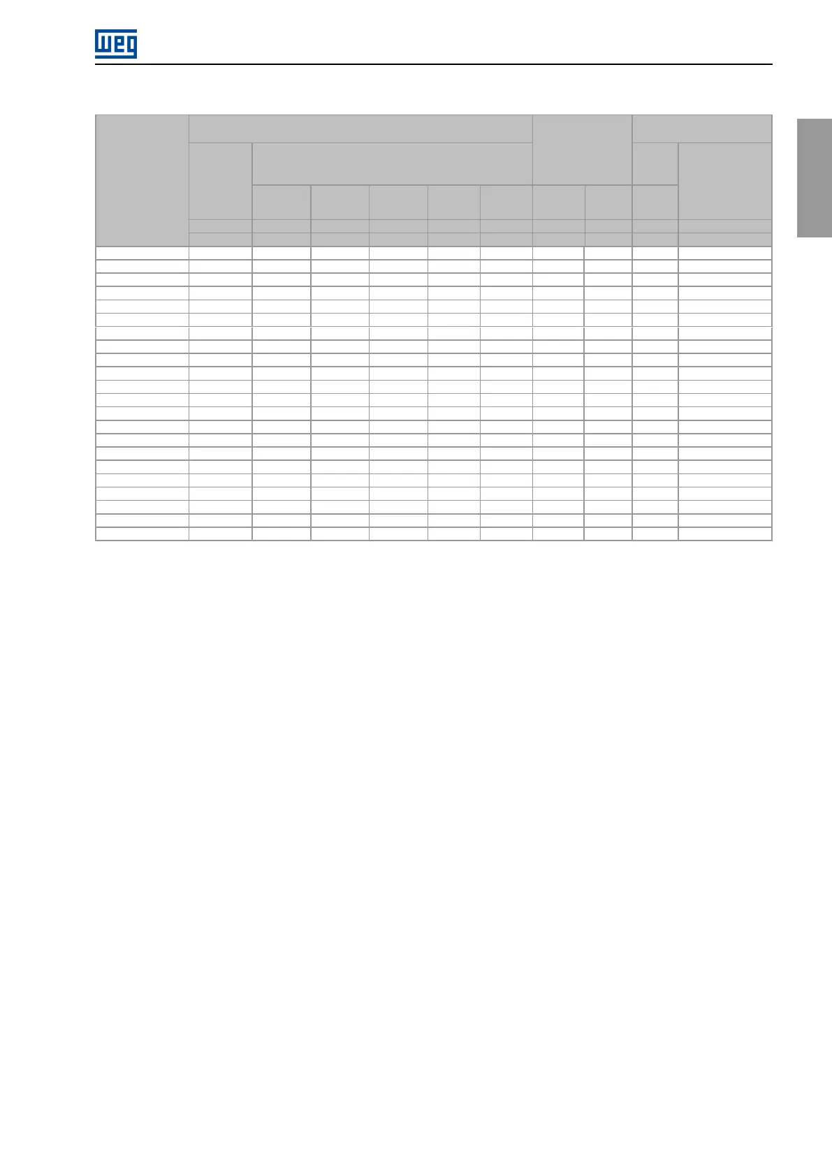 RatedpowervaluesdefinedbasedontheratedcurrentofWEGmotorsattheindicatedvoltages.
