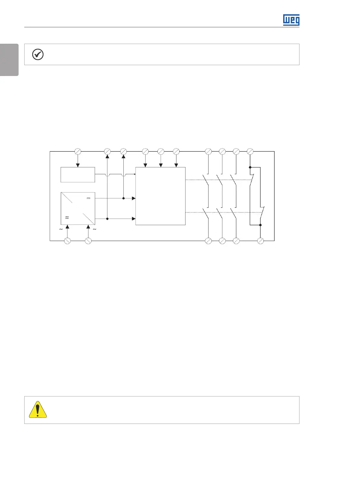 The CPW22 is powered (A1 / A2) with extra-low voltage (SELV / PELV). The internal logical system closes the safety