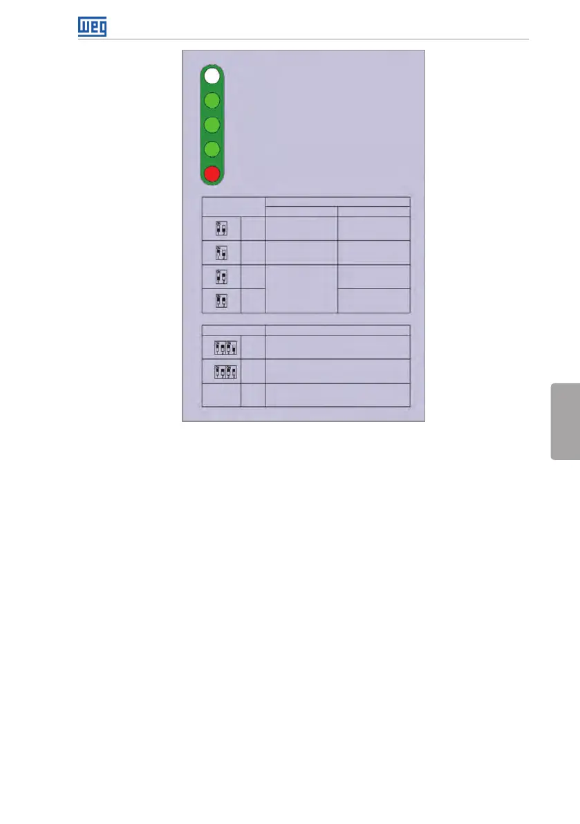 Falla (LED rojo): indica la falla que ocurrió en el DBW03, verifique la tabla 5.1.