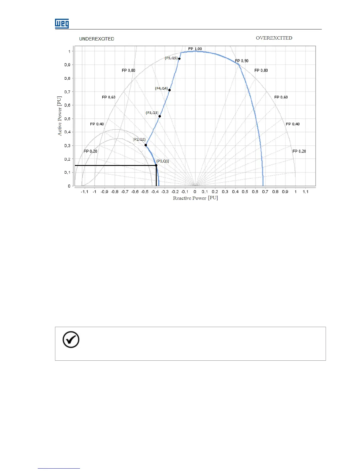Considering the capability curve of Figure 6.19, an apparent nominal power (S) of 10 MVA and the points