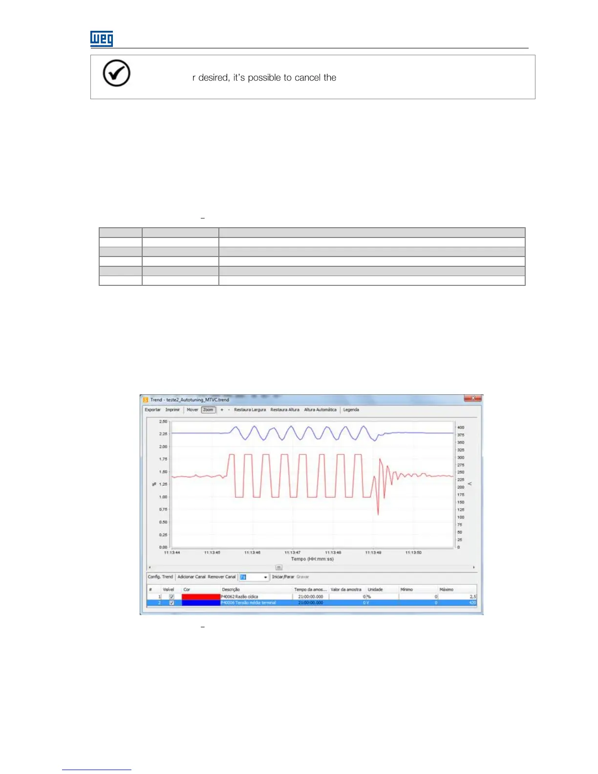 To verify if the automatic tuning is working correctly, it is recommended to monitor the variation of the duty cycle
