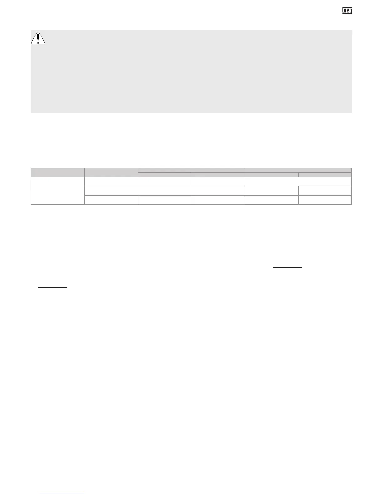 Para tener derecho a la garantía, el cliente debe cumplir las especificaciones de los documentos técnicos de WEG, especialmente aquellas previstas