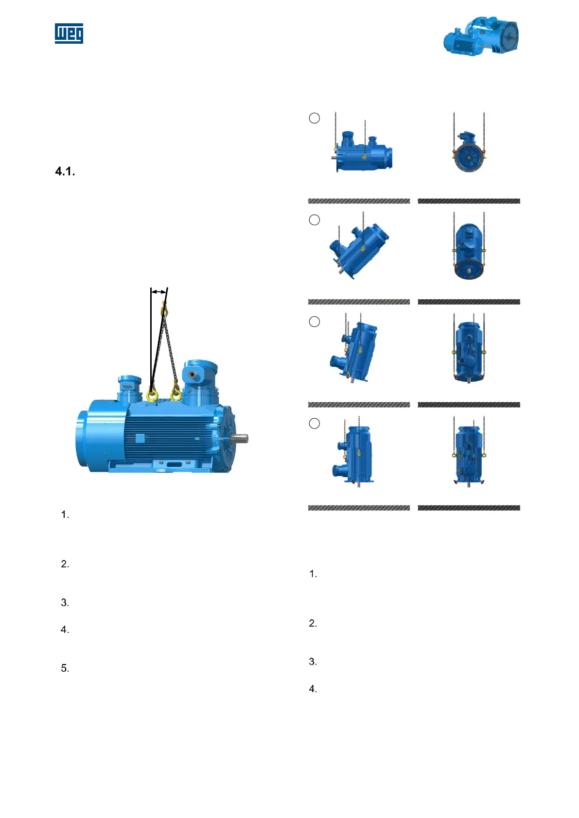 flange eyebolts until motor is in vertical