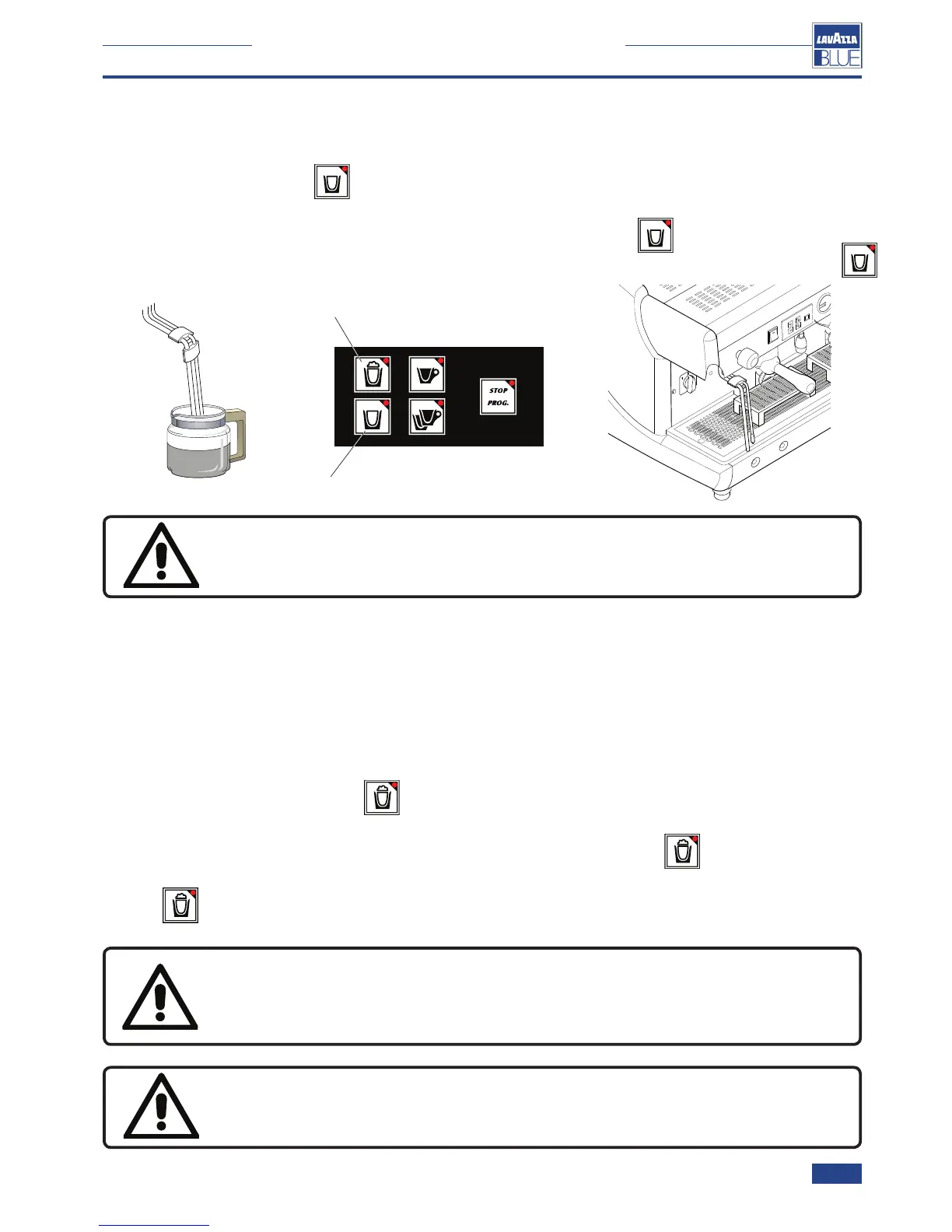 • once the set temperature is reached, the steam dispensing can be reactivated by holding down the Steamed hot milk button