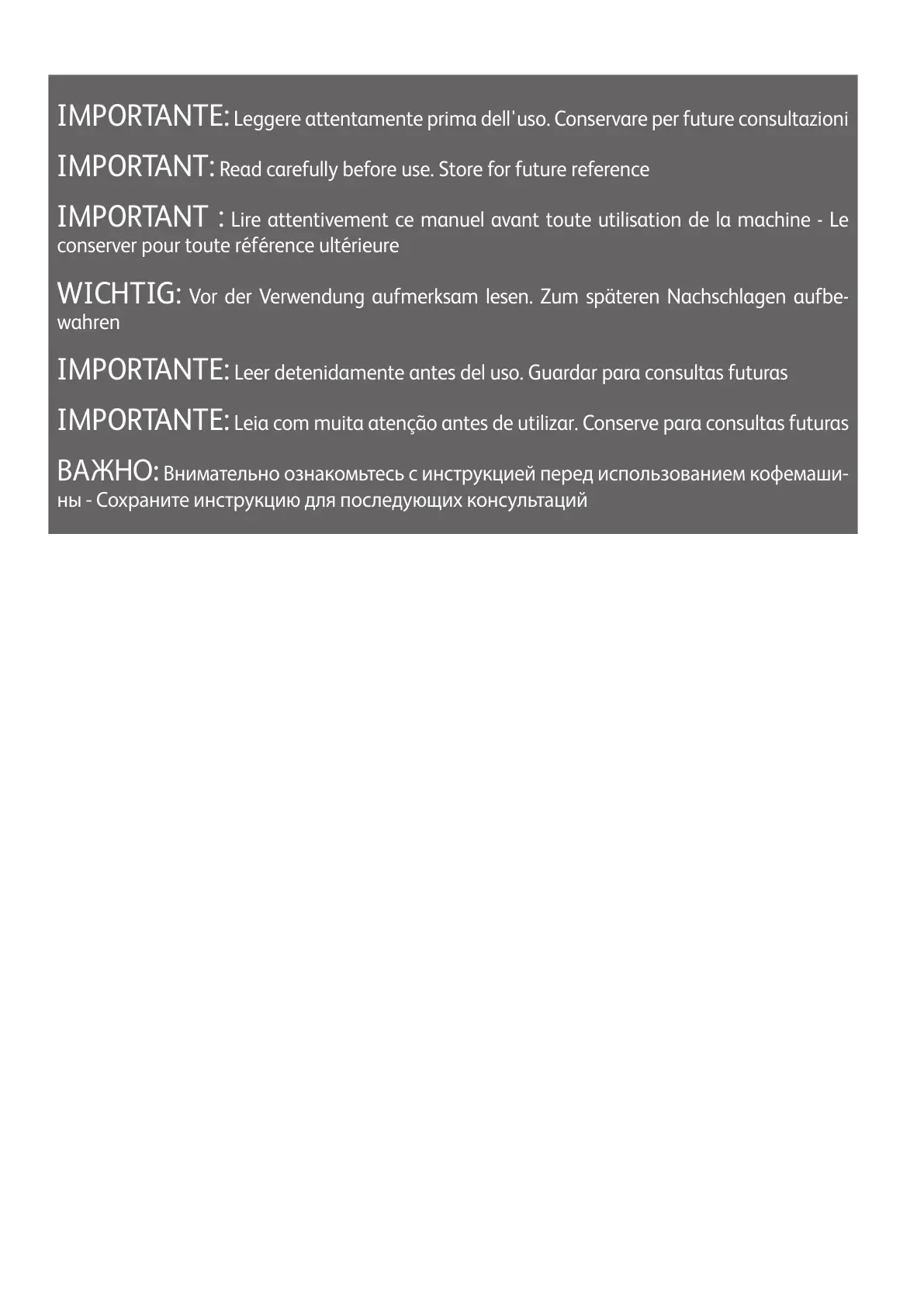 ВАЖНО: Внимательно ознакомьтесь с инструкцией перед использованием кофемаши-