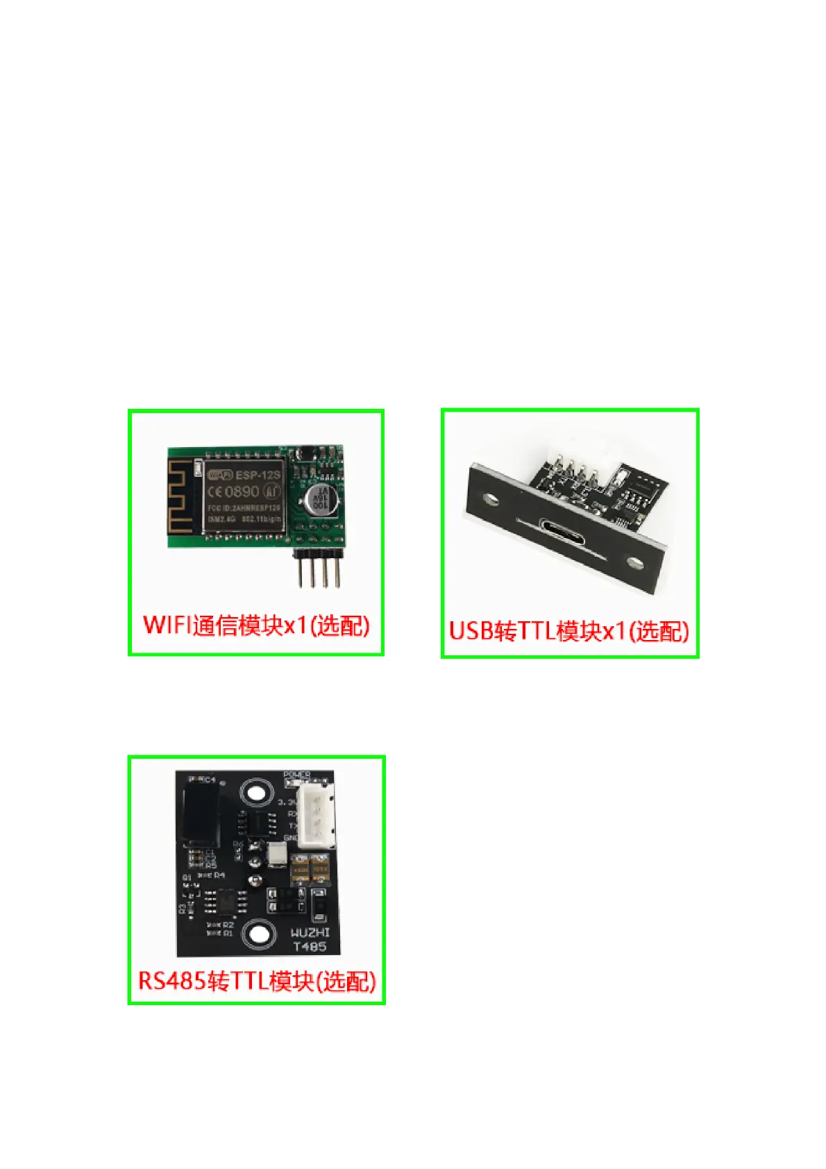 设备。WIFI 模块和 USB 模块、RS485 块为选配,需要请另行购