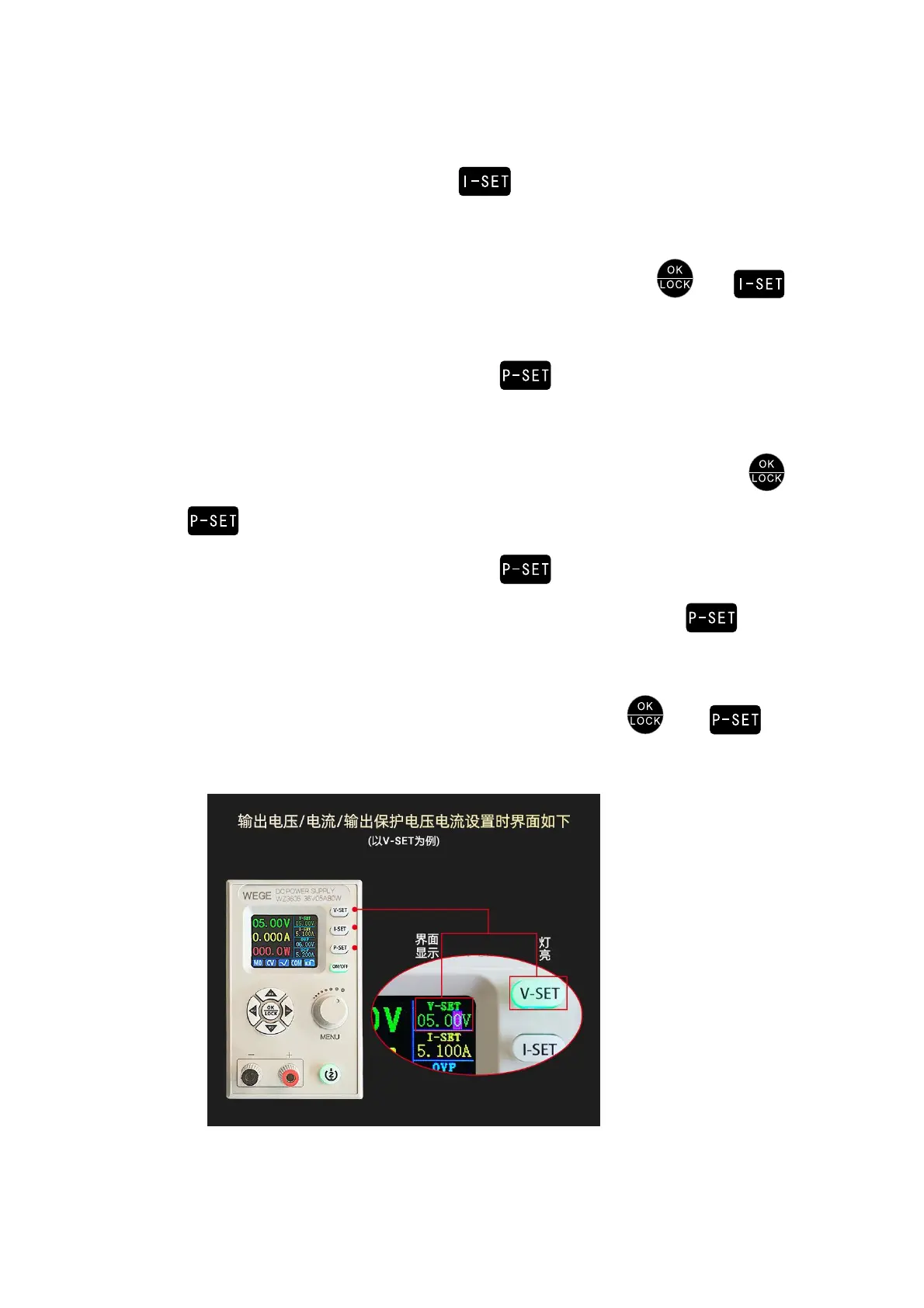 过流保护设置:按下保护设置键 ,过压保护设置被选中