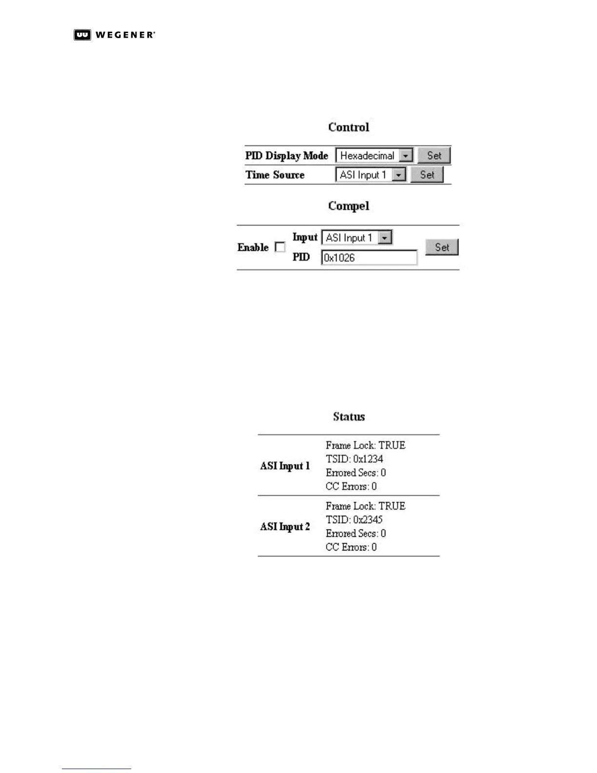 The Compel section is for systems that use Wegener's COMPEL Control. After you select