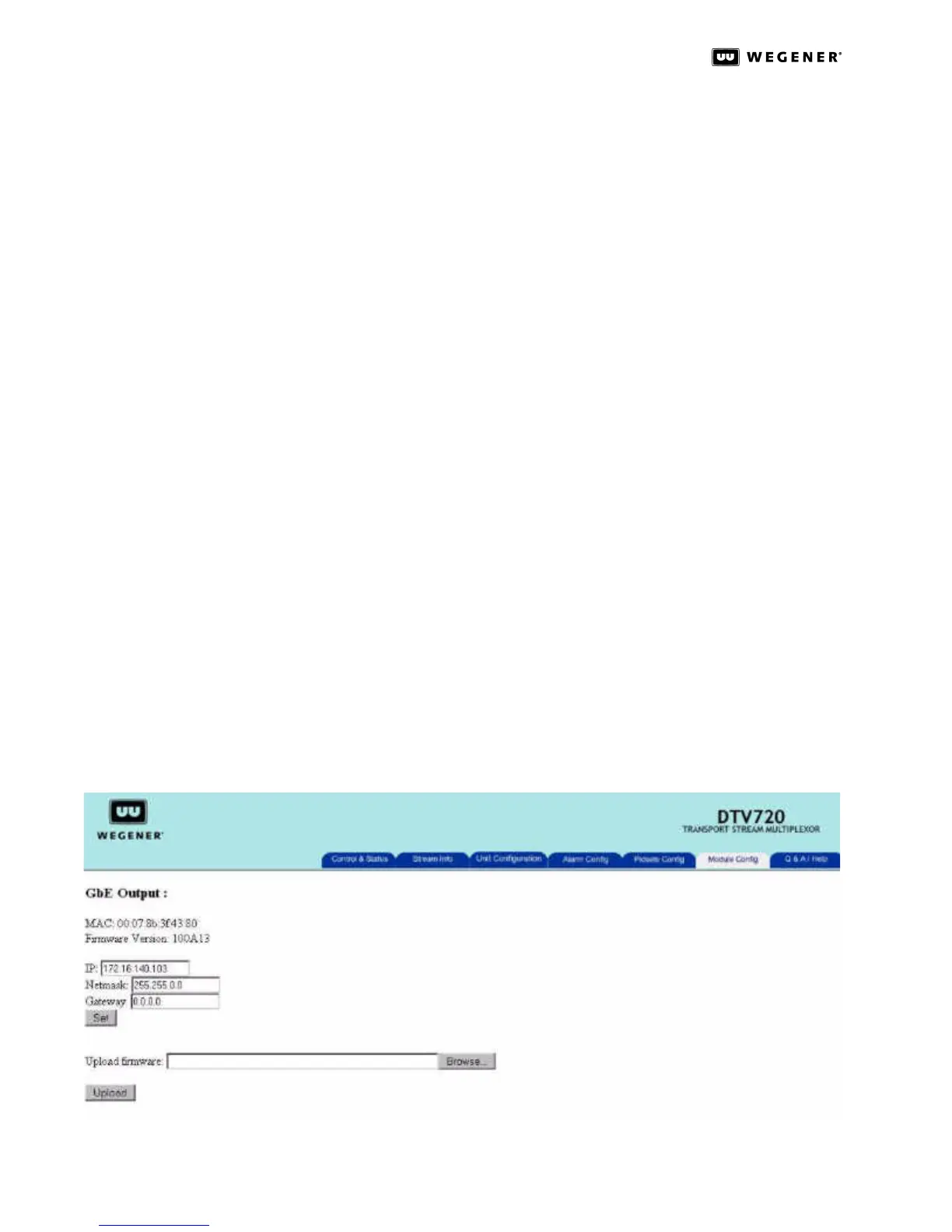 Figure 3.15: DTV 720 Module Configuration Page for GbE Output