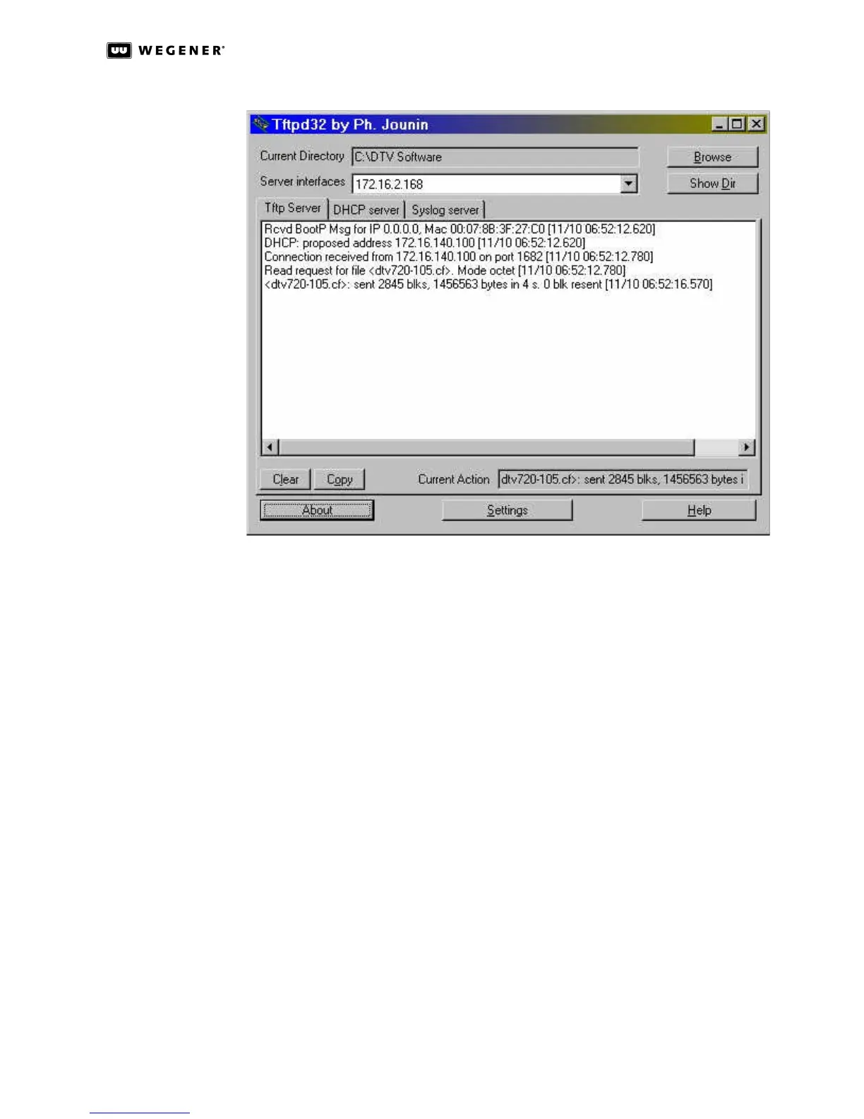Wegener DTV 720 - Figure 3.26: TFTPD Server Tab Showing File Transfer Log