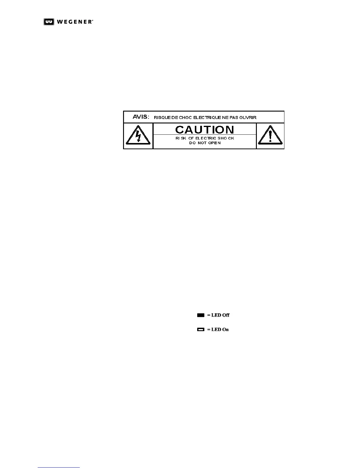 the unit will void your warranty. If you have any questions, contact Wegener’s Customer