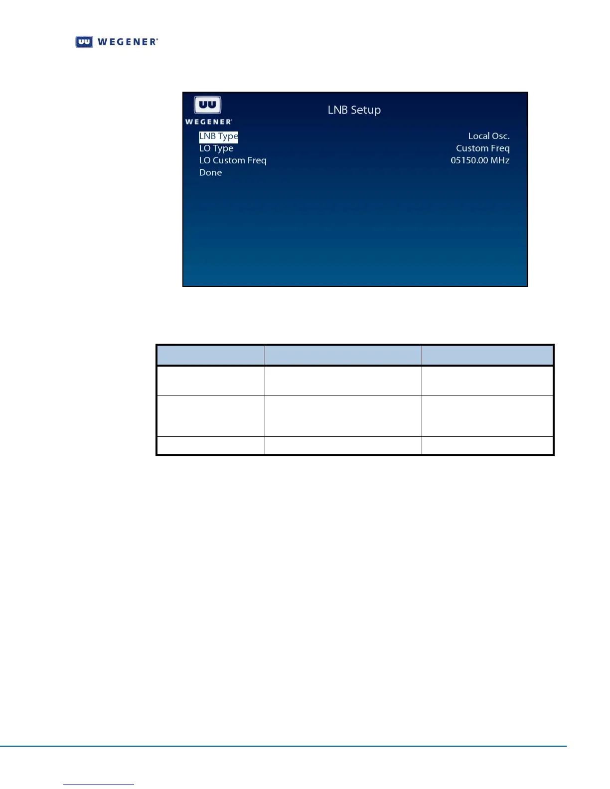 Figure 3.6: iPump 562 OSD LNB Setup Screen