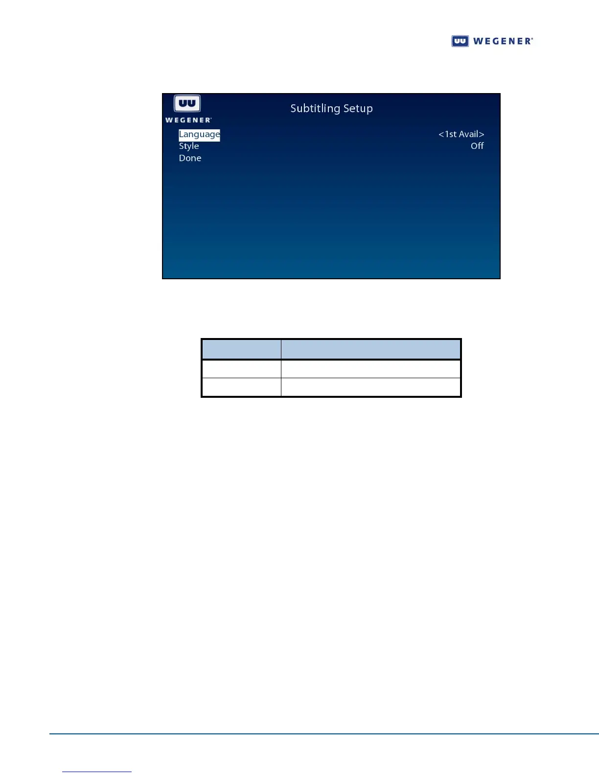 Use the Subtitling Setup screen to set and display the Subtitling information.