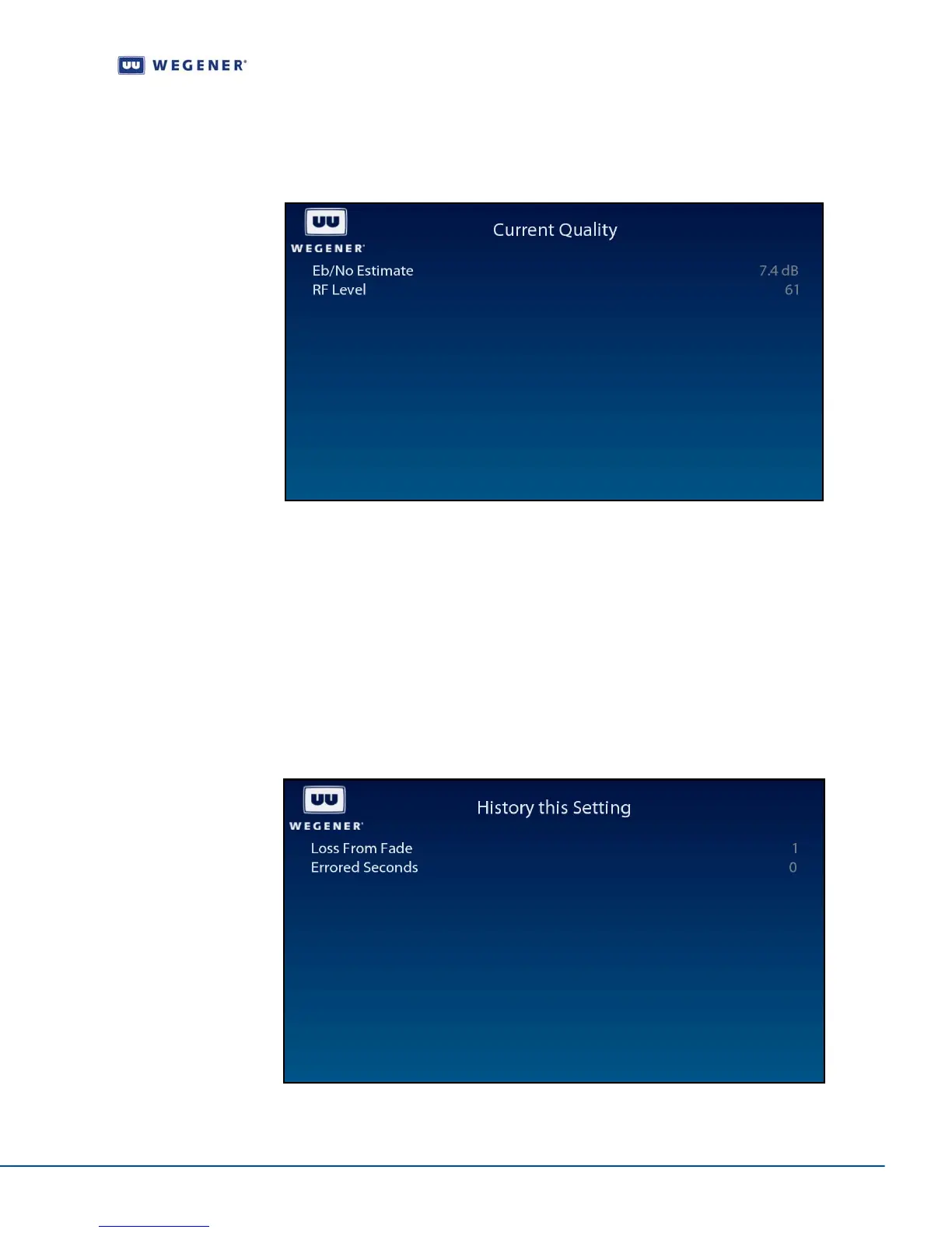 OR from a Signal Quality sub-screen, press the left arrow button to go back to the