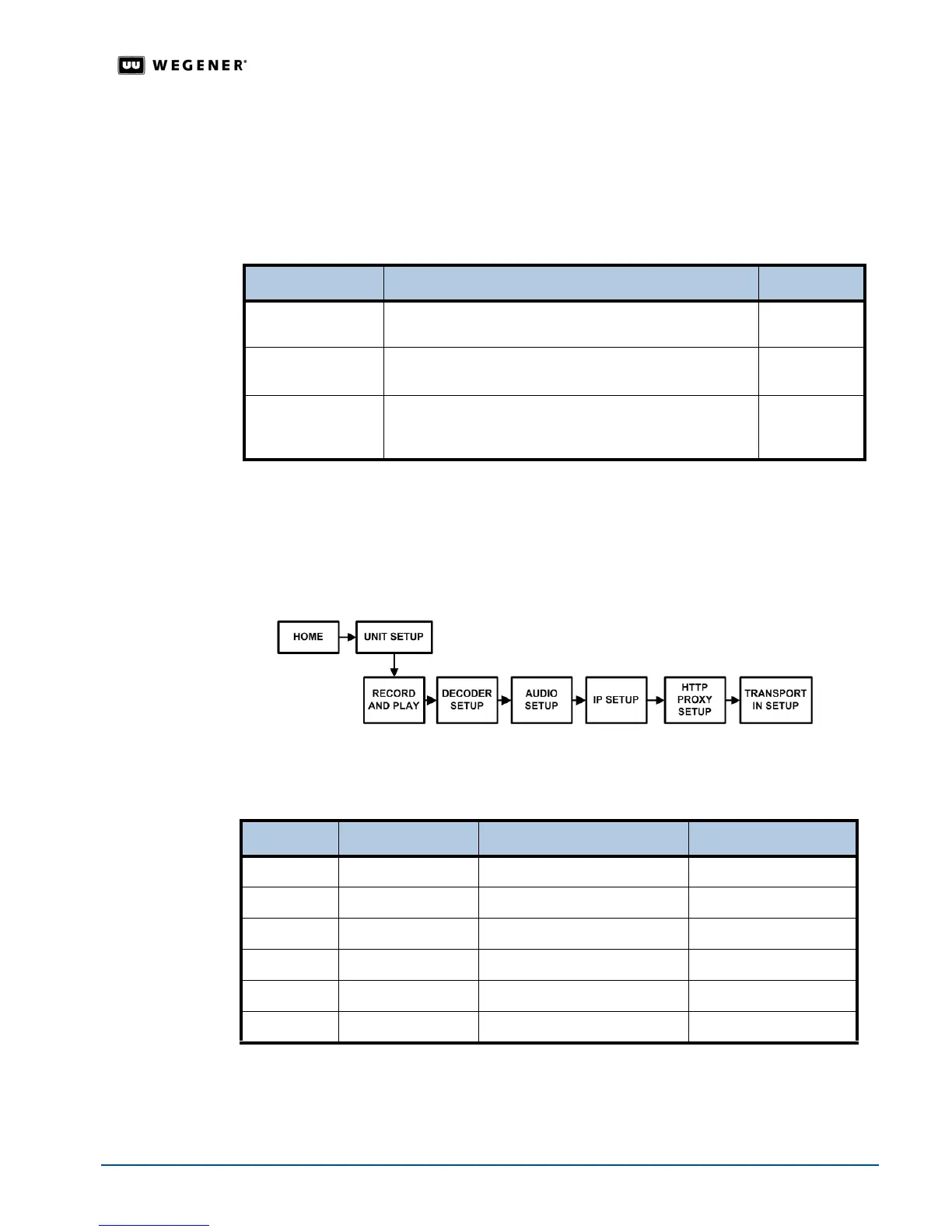 Figure 3.10: LCD menu navigation to Transport In Setup screen