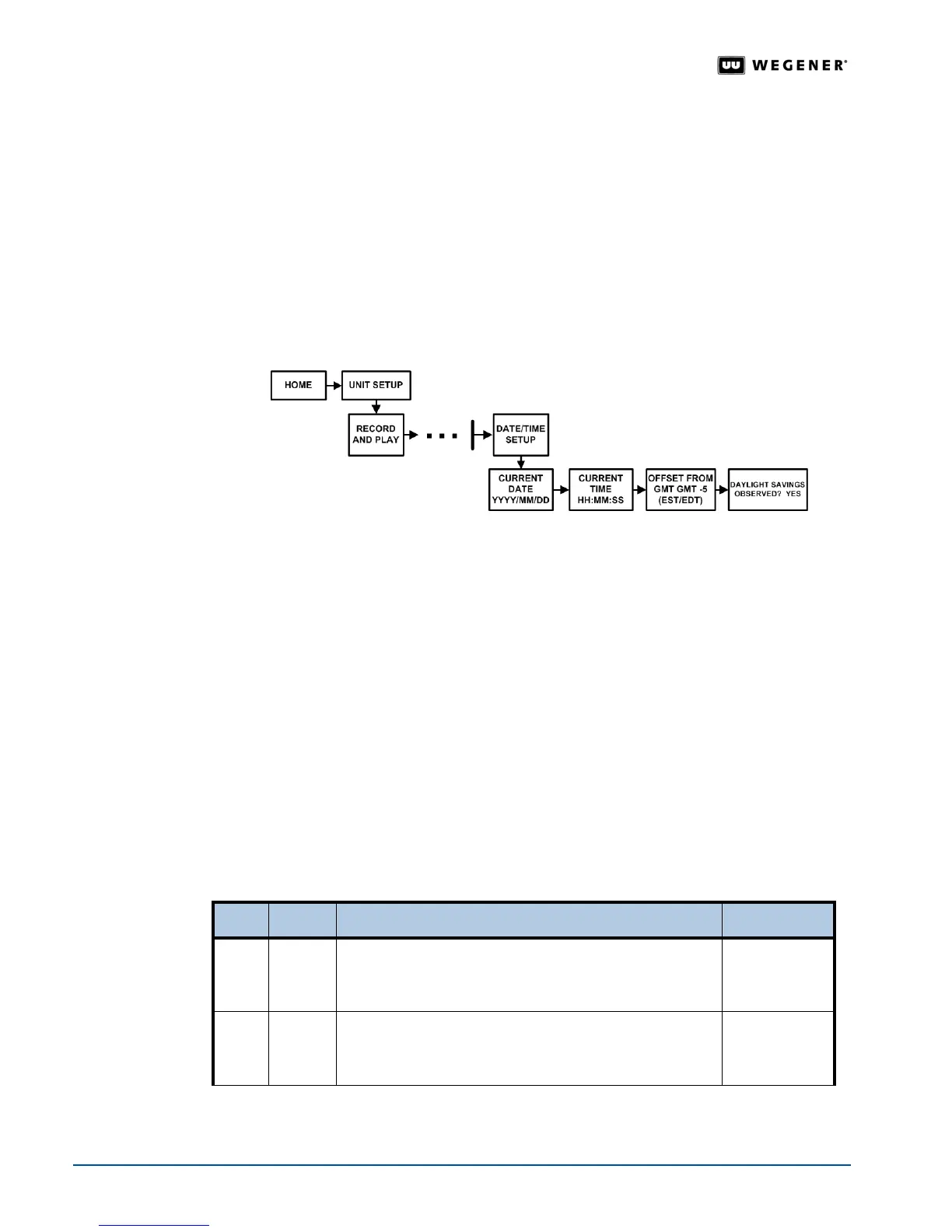 Note: Date/Time Setup may also be performed from the web browser. See Date / Time