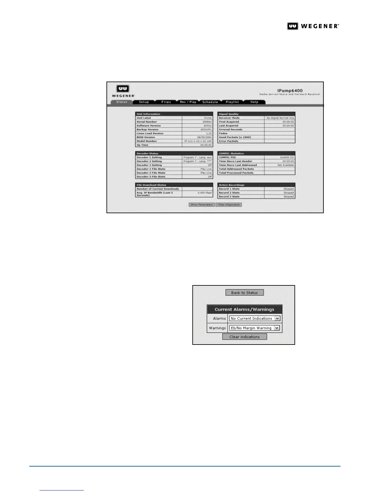 The iPump 6400 allows you to view current alarm and warning indications, and remove