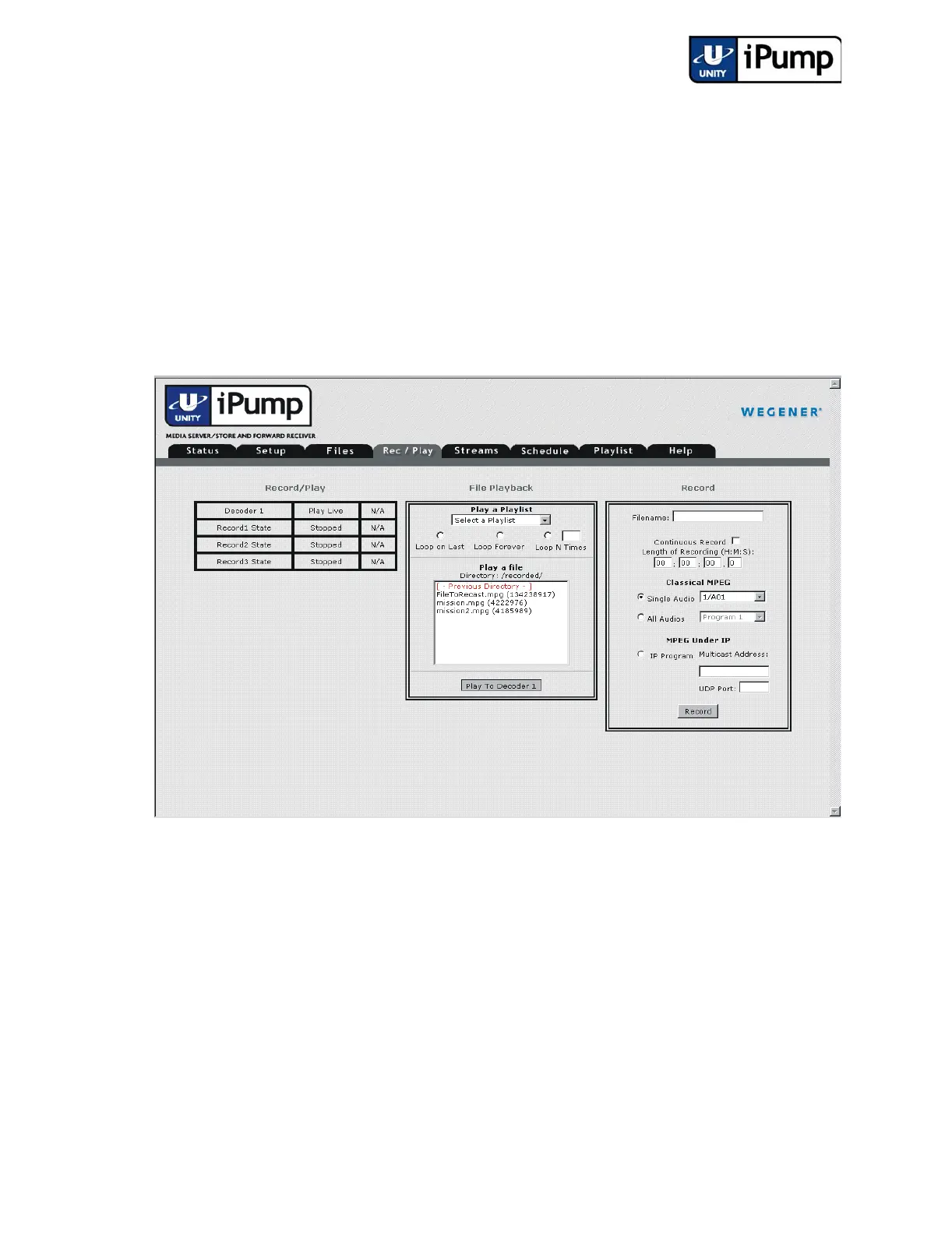 NOTE: Record and Play settings are volatile through power cycles. Except for