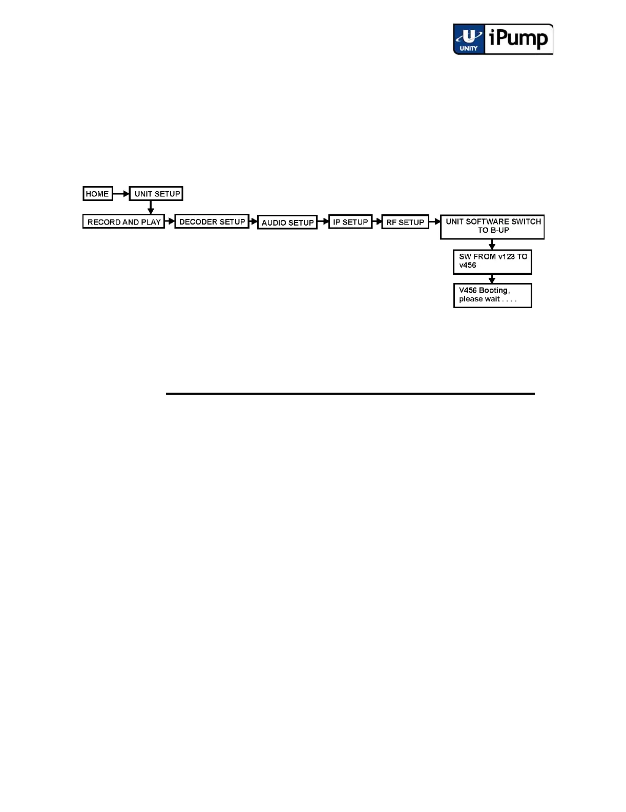 From the iPump front panel, navigate to the Unit Software Switch to B-Up
