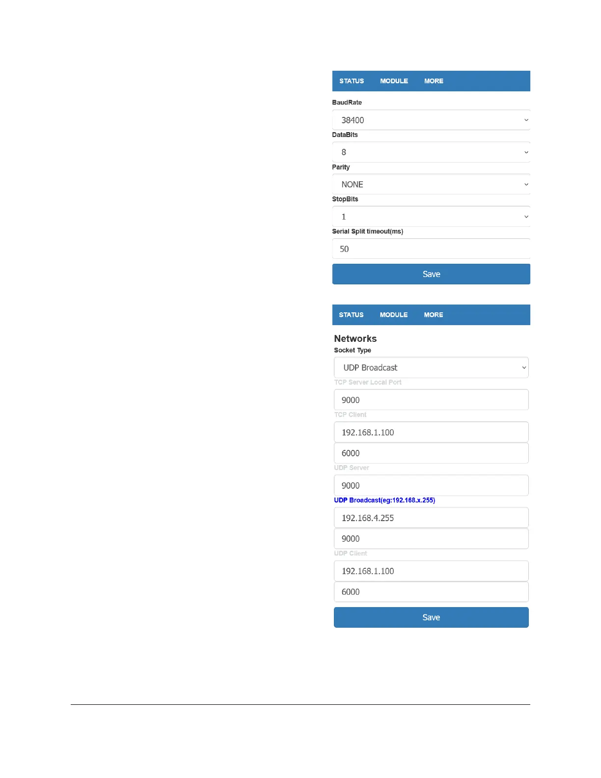 Navigate to MODULE > Serial. Set BaudRate to 38400.