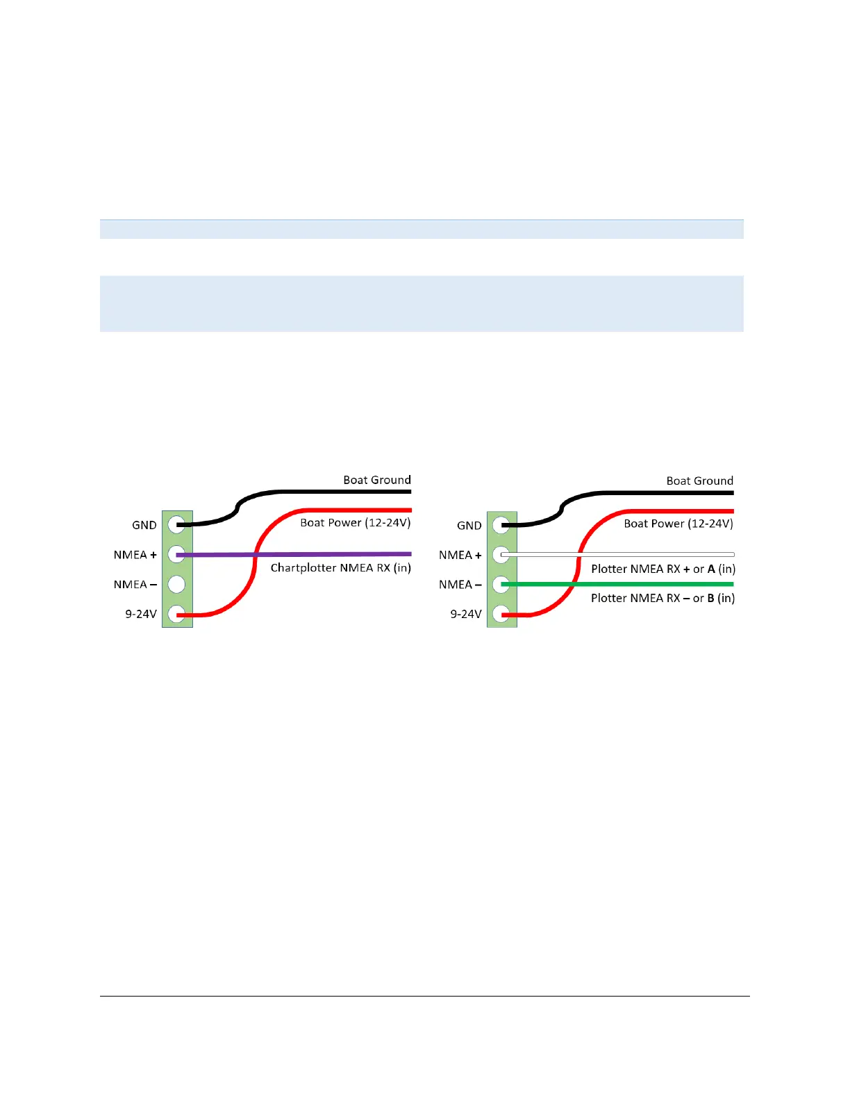 single-wire or two-wire NMEA 0183 connection. Note that the colors may be different. Check the