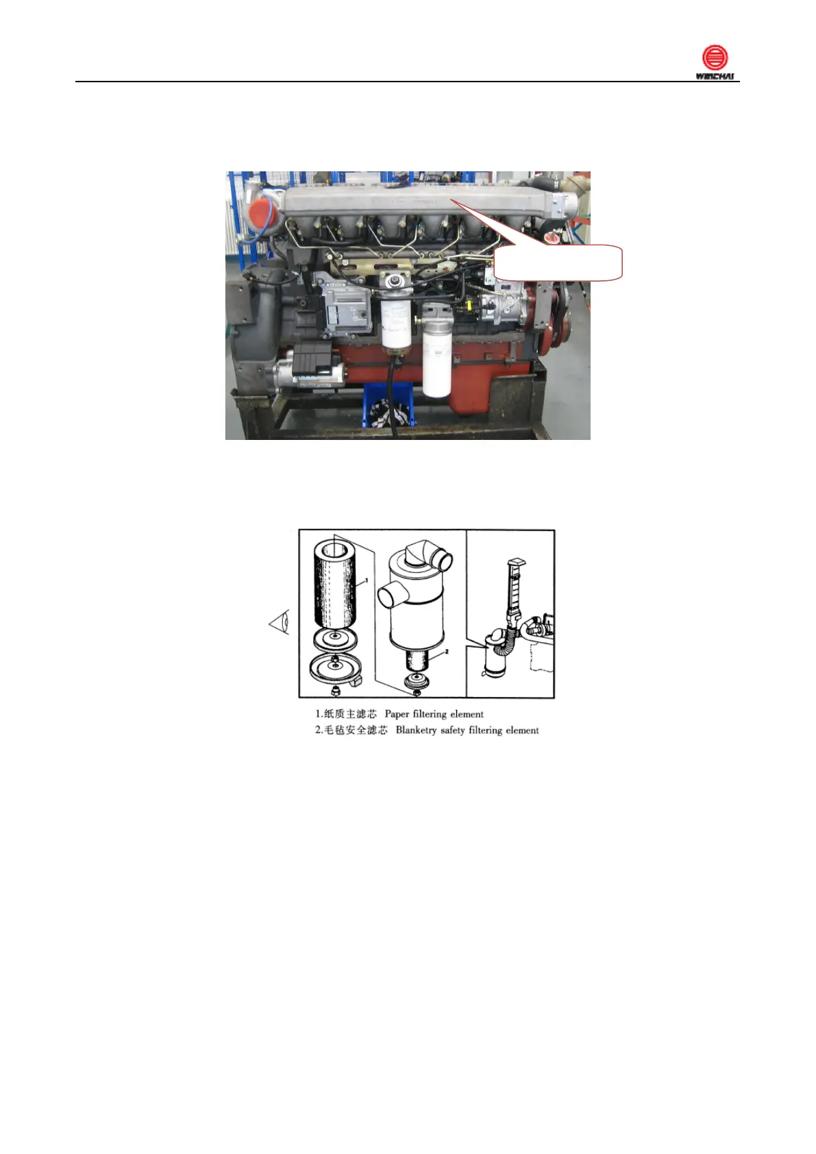 Notice: It’s absolutely prohibited to run the engine without the air filter; otherwise, dust and foreign matters may