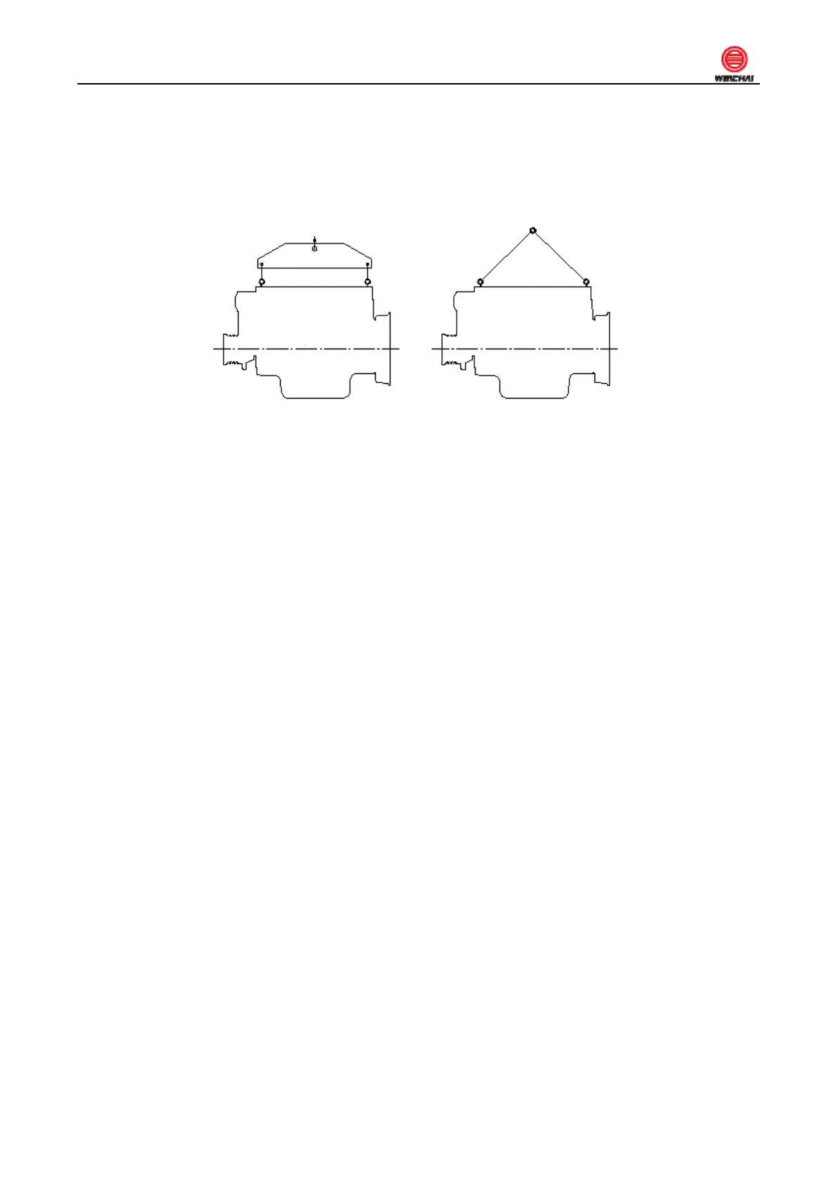 When hoisting the engine, keep the engine crankshaft centerline in horizontal state, and never hoist the engine