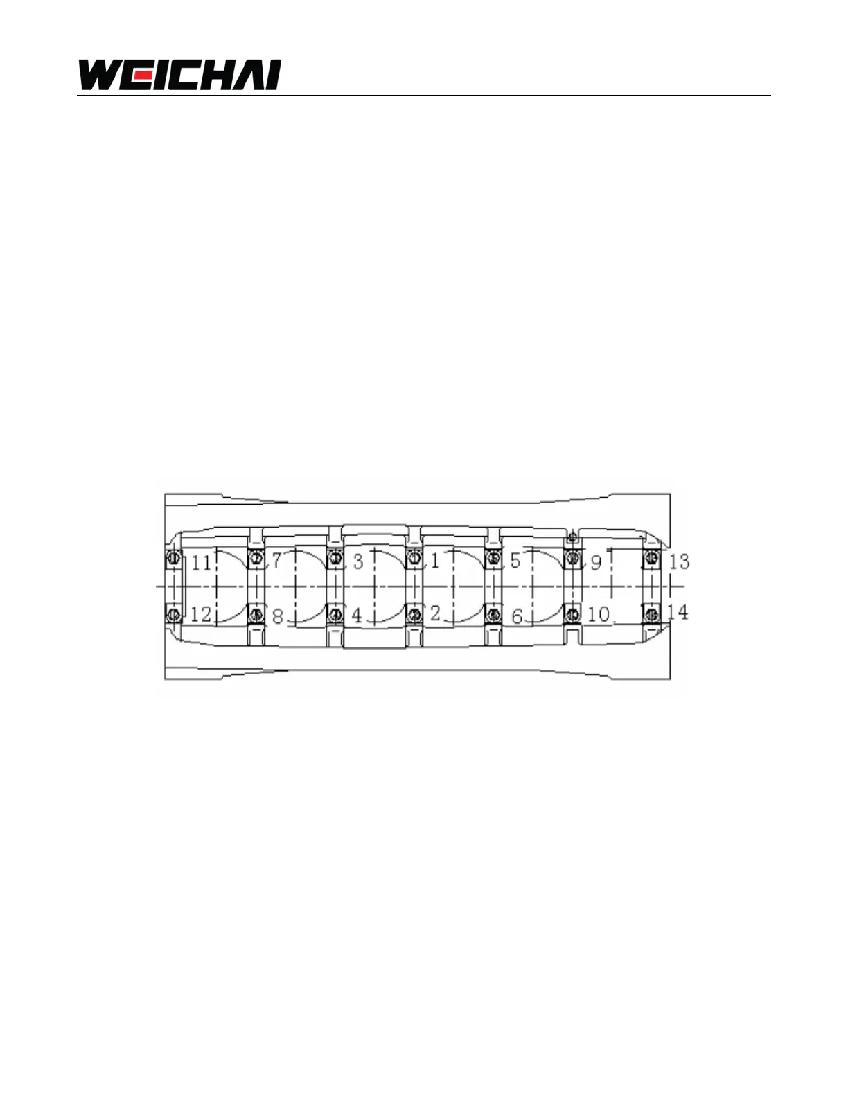 Place main bearing bolts and pre-tighten them according to the order shown in Figure below.