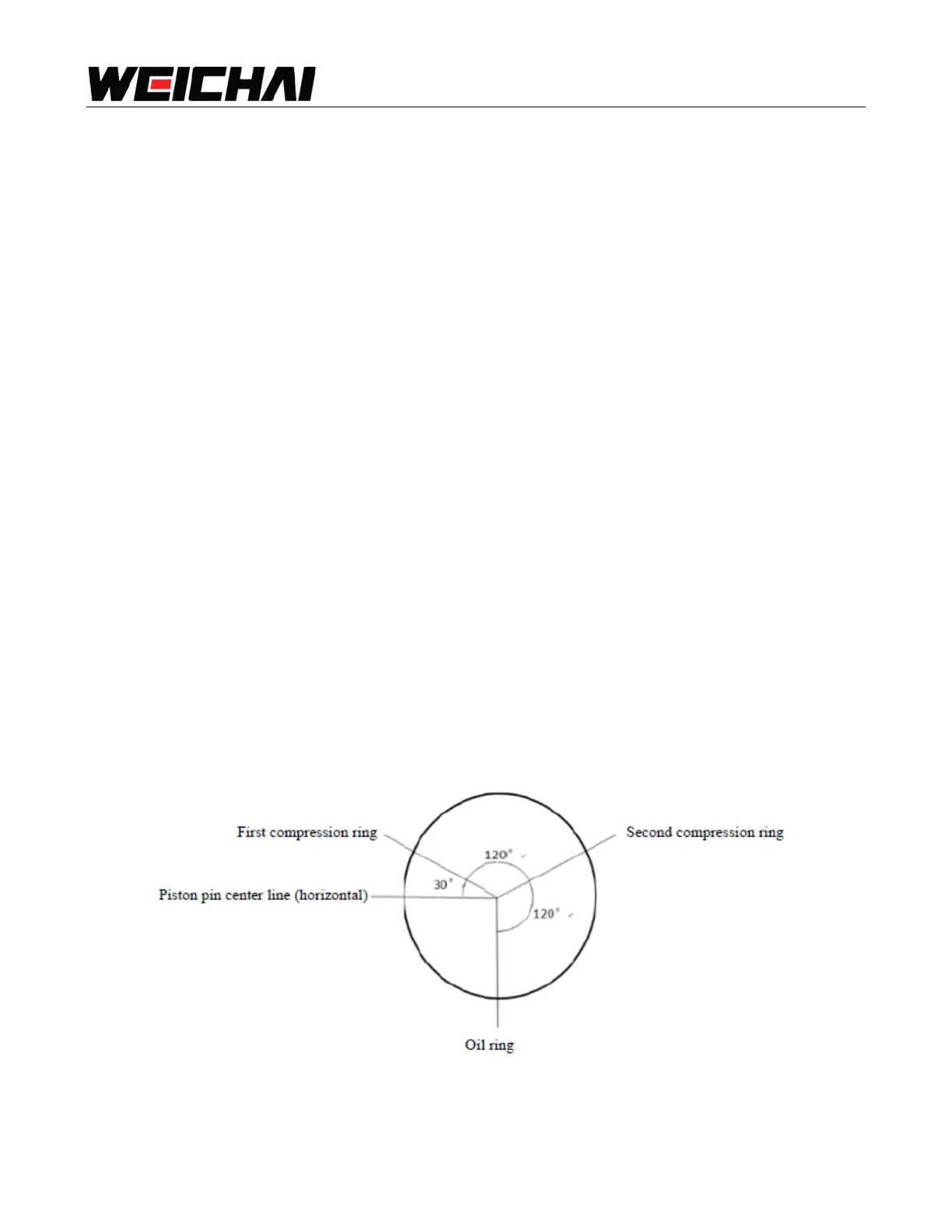 120° to that of the first compression ring, and opening direction of oil ring should be 120° to