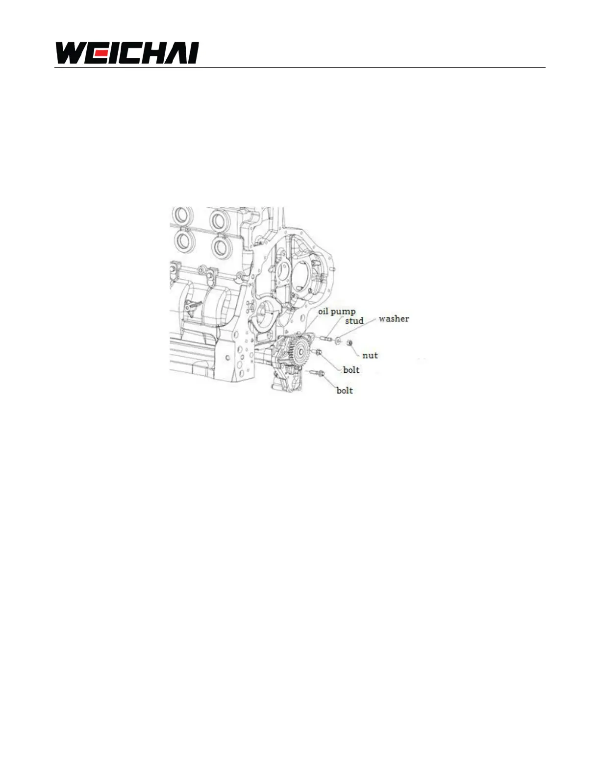 Remove the two hexagon bolts and self-locking nut, take down engine oil pump, as shown in Fig.