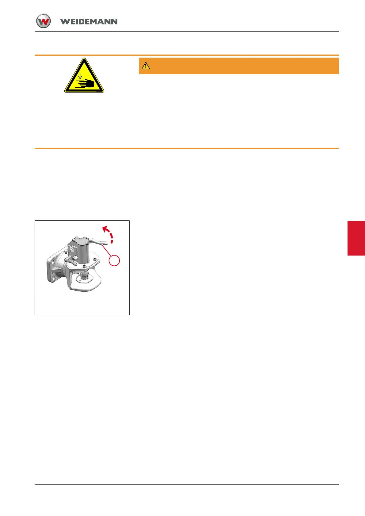 4. Press lever1 all the way upward until the coupling pin audibly en-