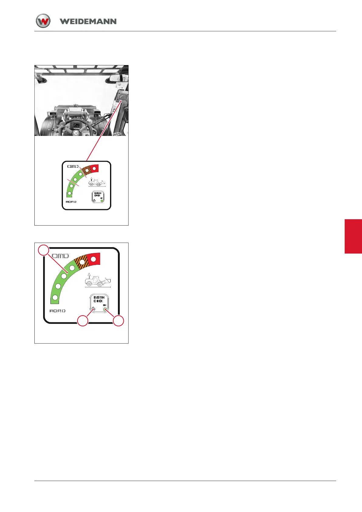 • Red: There is an acute risk of the vehicle tipping over. Immediately
