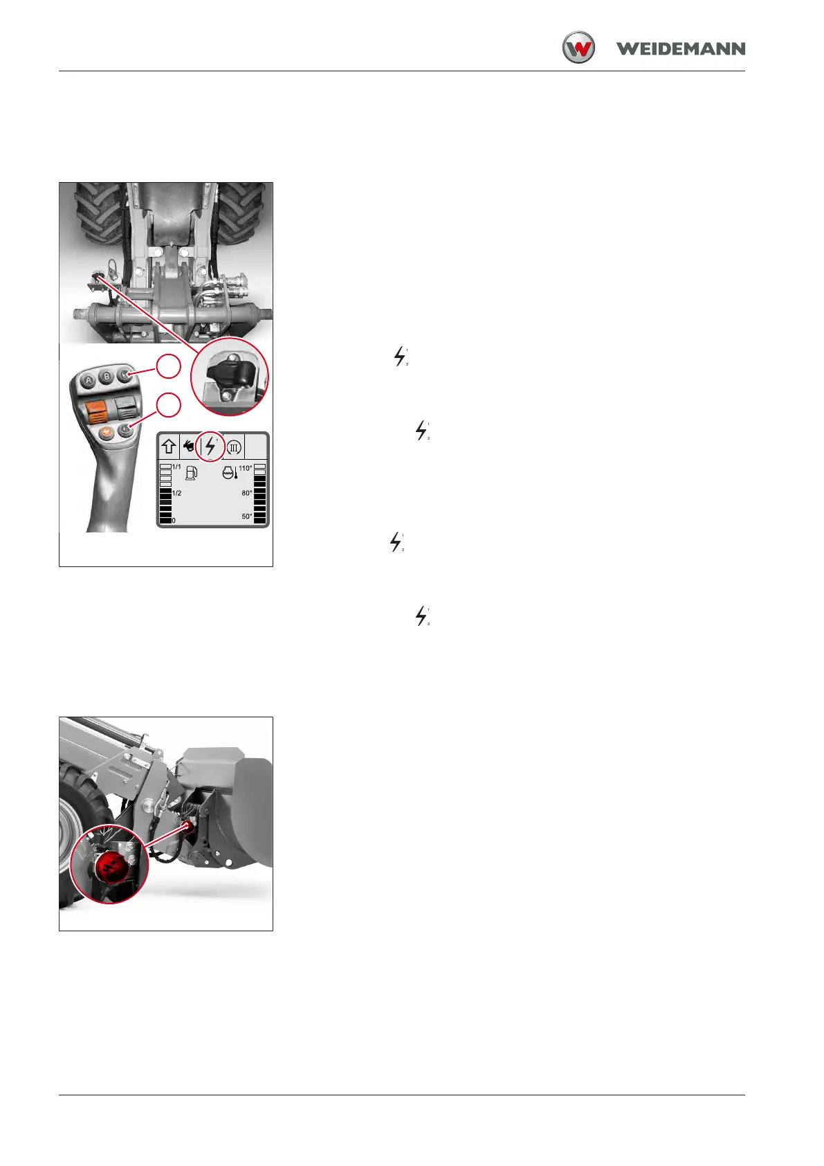 The 3-pole plug receptacle on the loader unit is operated with buttons 1