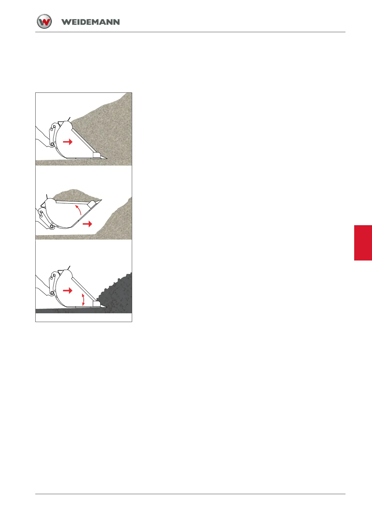 The bucket can be used for loading or excavation work. Practice working