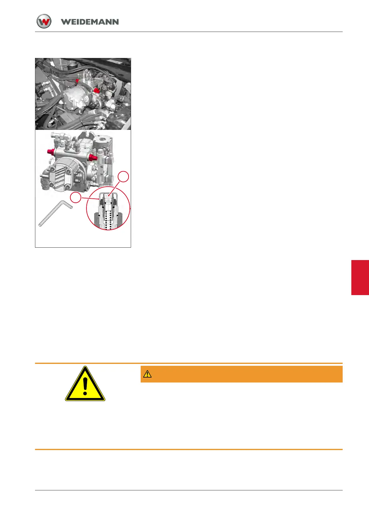 1. Remove the plastic caps 1 from the high-pressure limiting valves.
