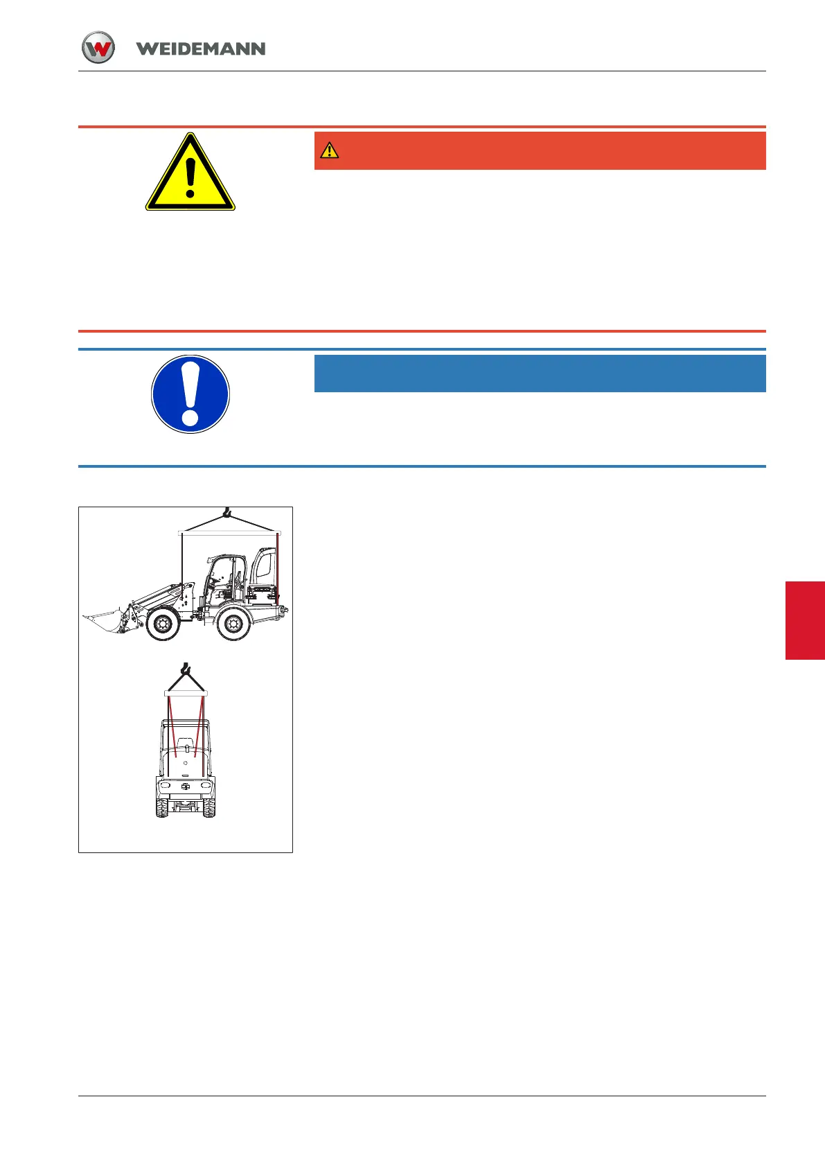 ► Use tested, undamaged and sufficiently dimensioned lifting gear.