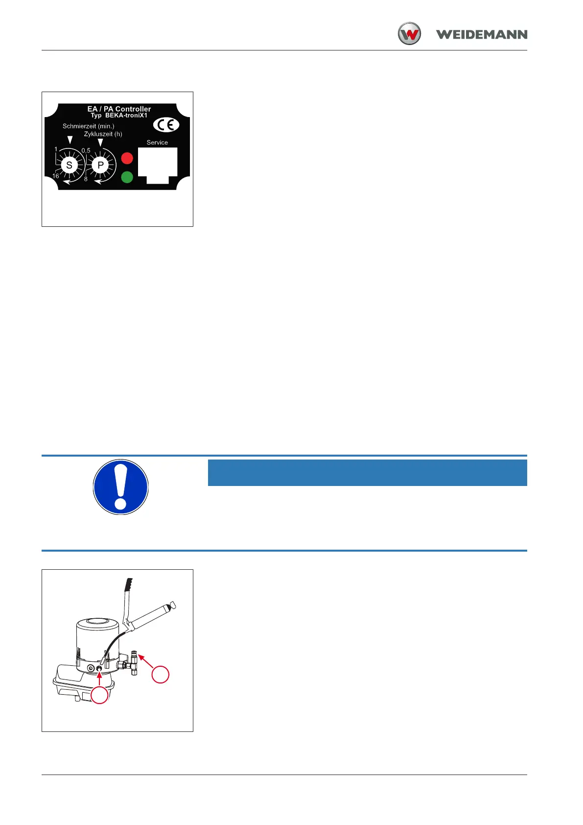 Lubrication time S can be adjusted between one and 16 minutes. There
