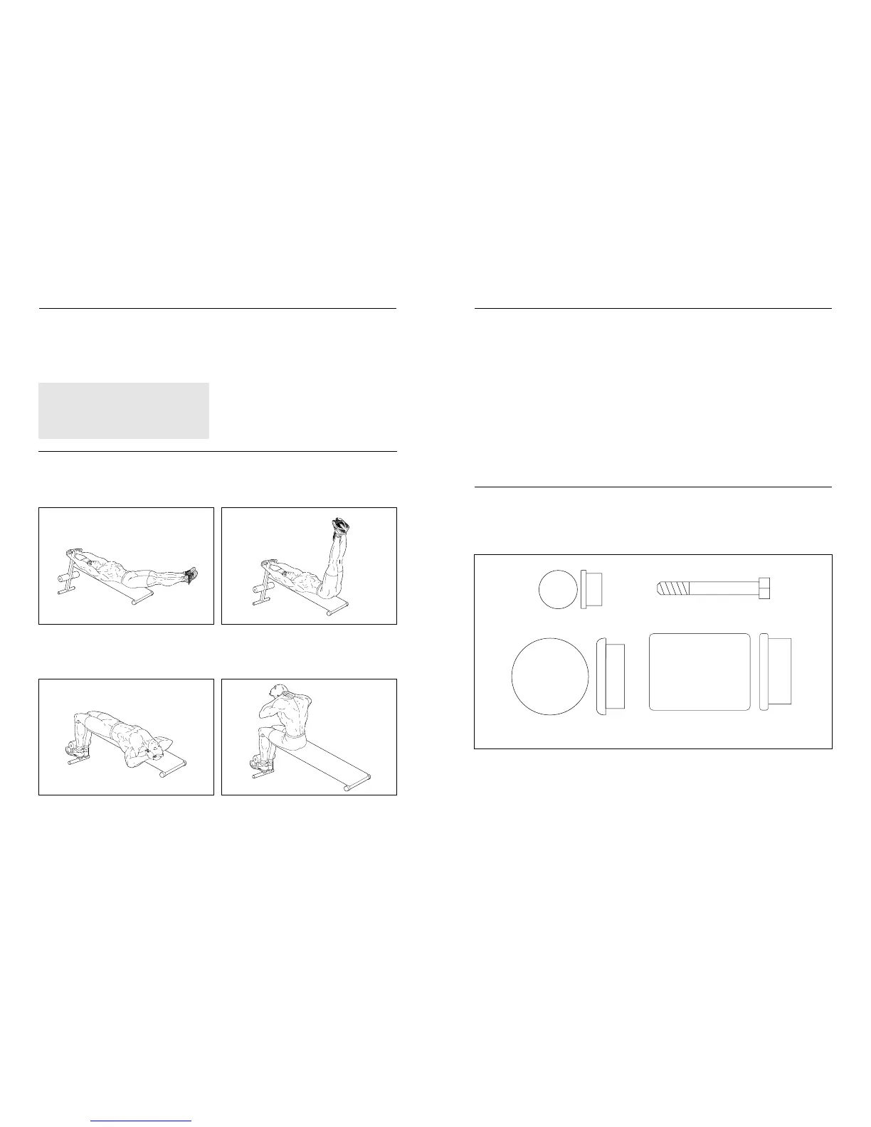 Lie on the bench and tuck your feet under the pads as shown. Bend forward at the waist, keeping your back