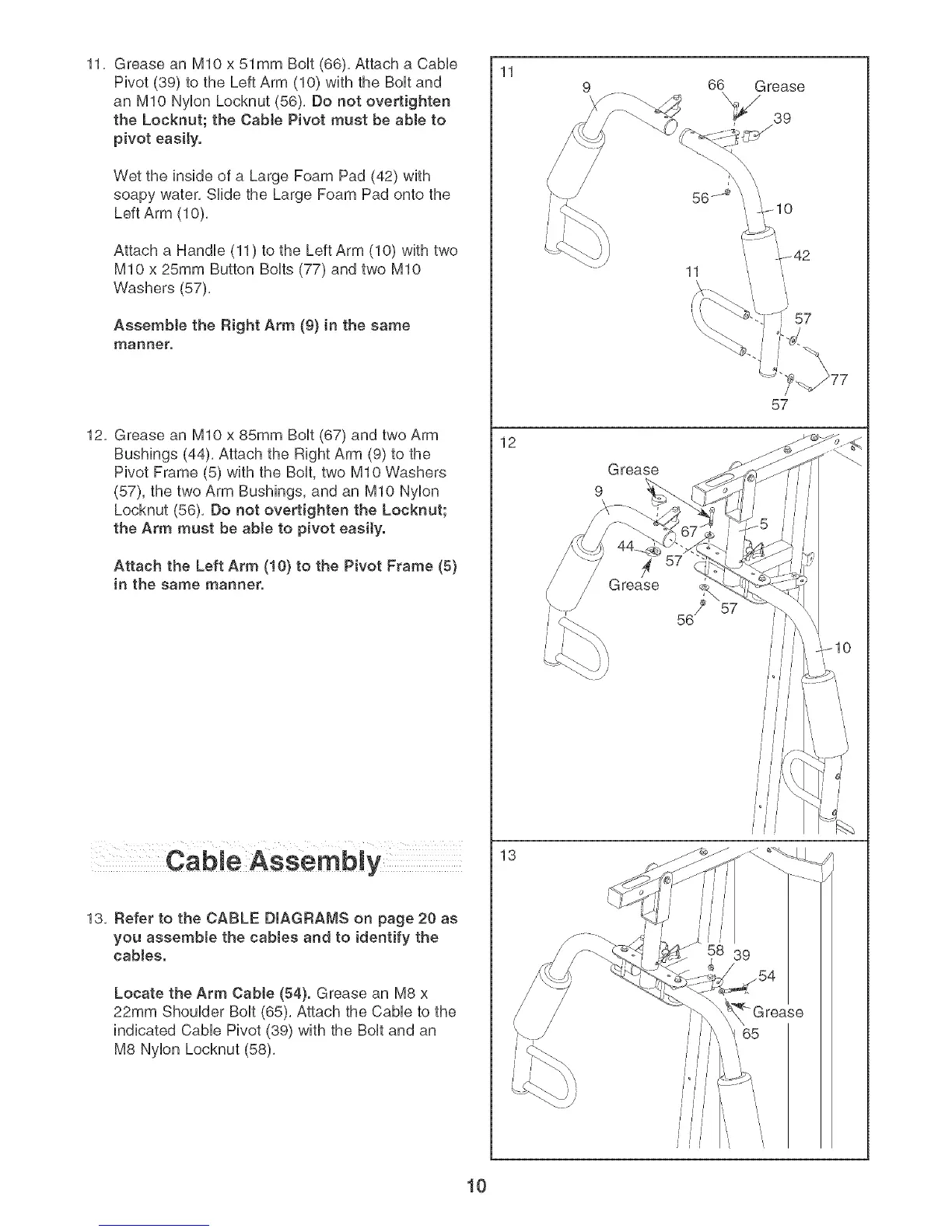 12, Grease an M10 x 85mm BoUt(67) and two Arm