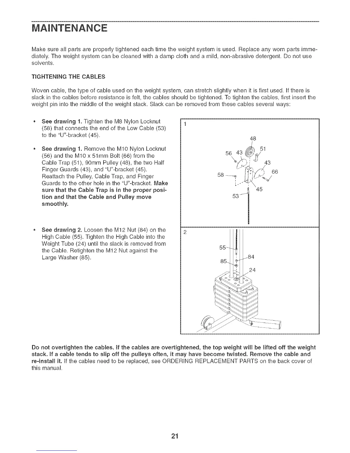 Do not overtighten the cables. If the cables are overtightened, the top weight will be Hfted off the weight