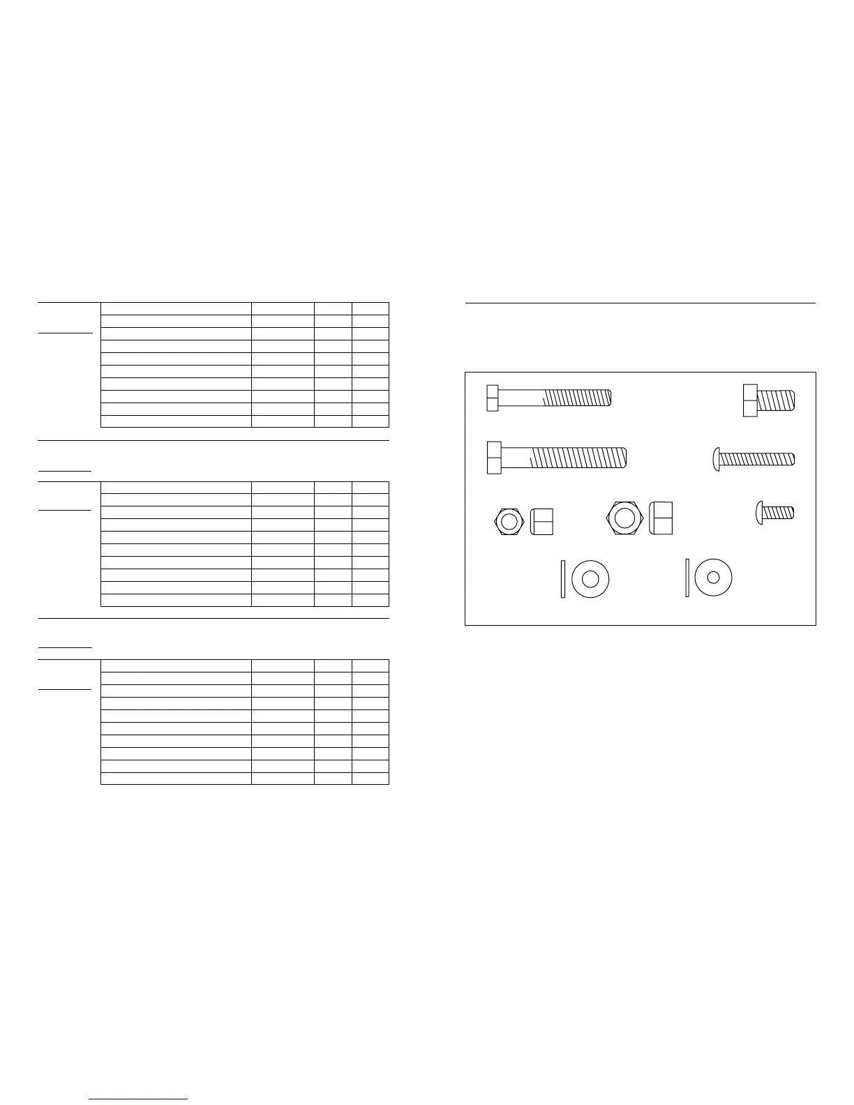 This chart is provided to help you identify the small parts used in assembly. The number in parenthesis below