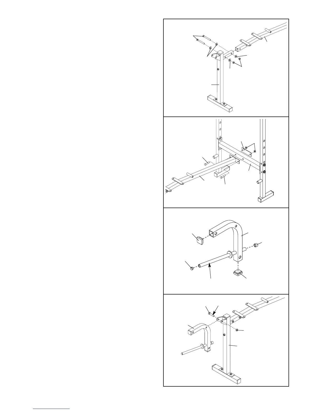 4. Attach the Frame (2) to the Crossbar (3) with two